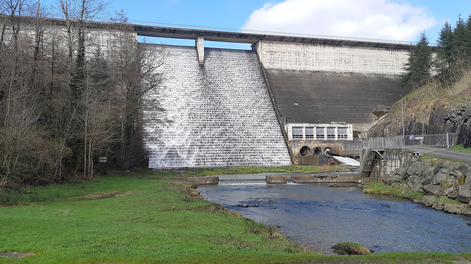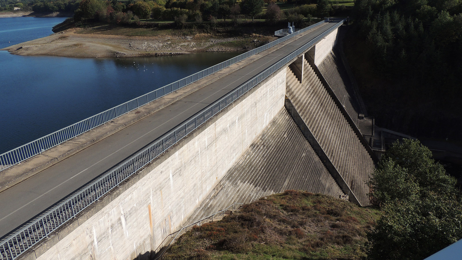 La retenue est un ouvrage de classe A de type poids. Il mesure 200m de longueur entre ces deux rives. Il est constitué d'une tour de prise d'eau en béton avec 4 ouvertures à différentes hauteurs d'eau. Sa particularité est son évacuateur de crues caractéristique en marches d’escalier. Le seuil de l’évacuateur est surmonté d’un pont-route permettant la traversée rive à rive du barrage sur deux voies de circulation. Les marches d’escalier et le bassin aval permettent la dissipation de l’énergie de l’écoulement déversant.