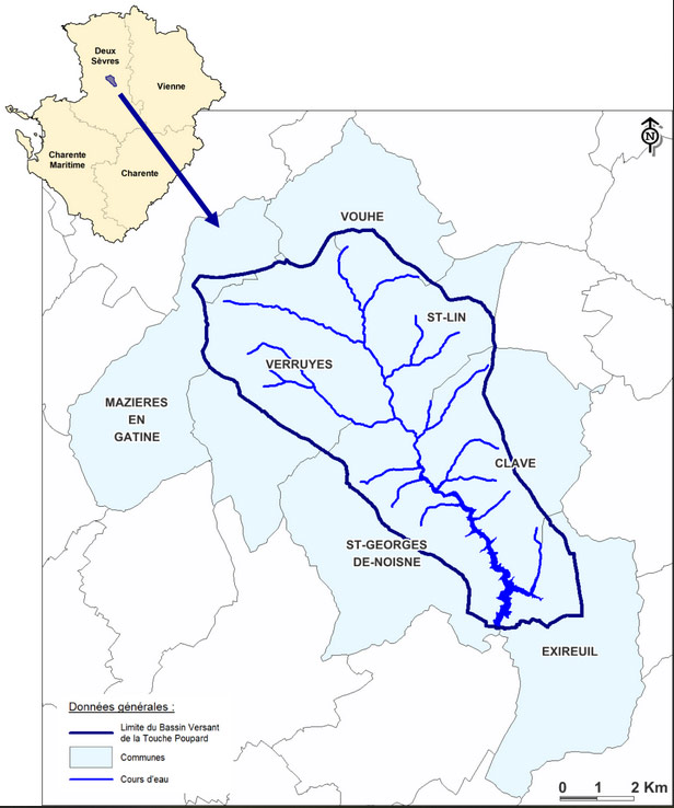 Le bassin versant du barrage de la Touche Poupard s'étend sur 55 km² sur un plateau du massif cristallin vendéen. Il concerne 7 communes du département des Deux-Sèvres pour une population totale de 3 263 habitants : Exireuil, Saint Georges de Noisné, Clavé, Verruyes, Saint Lin, Mazières en Gâtine et Vouhé.