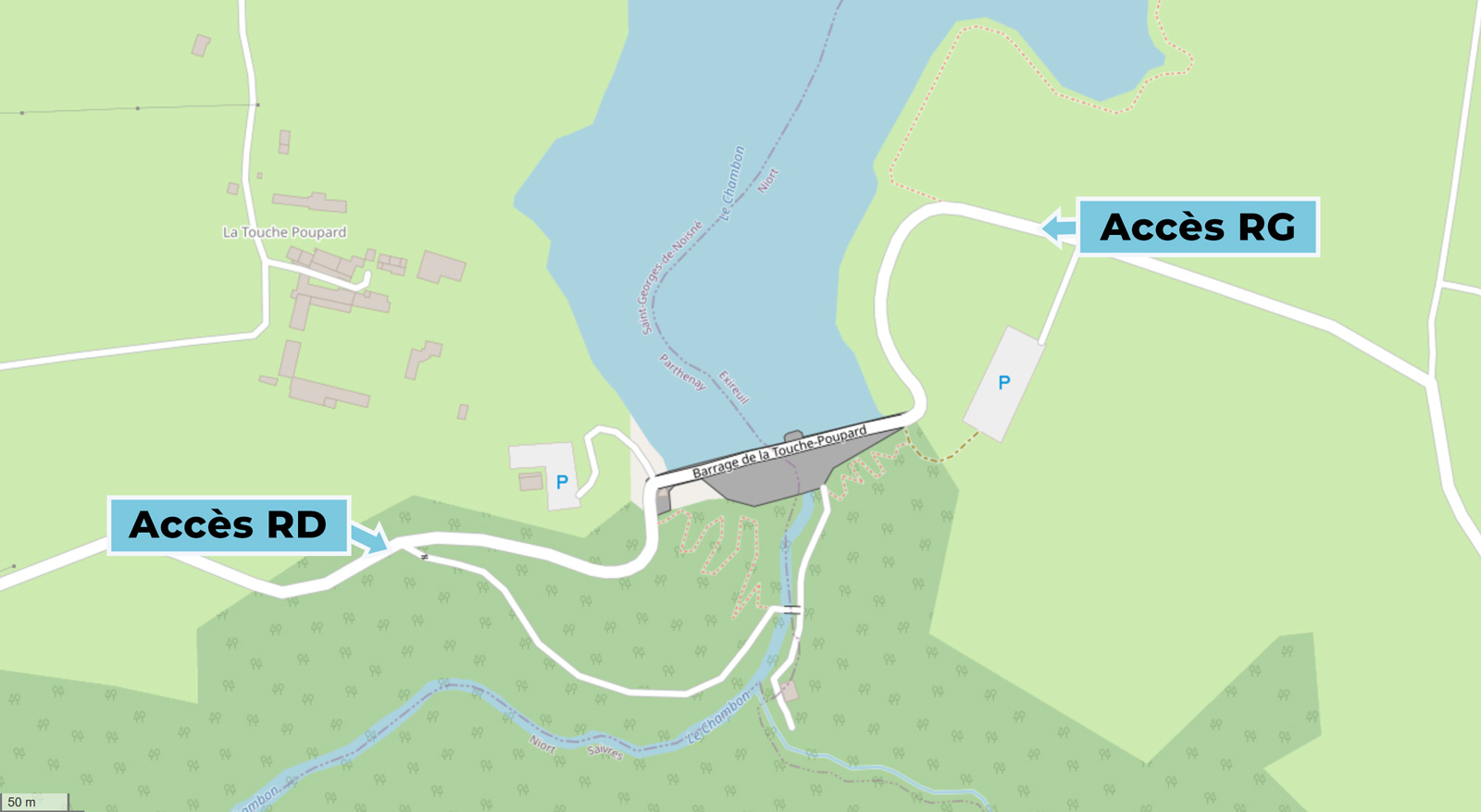 Le barrage de la Touche Poupard est situé sur la rivière du Chambon, sur le territoire de 3 communes : Exireuil, Saint-Georges de Noisné et Clavé.